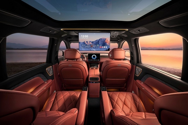 Дополнительные пульты встроены и в подлокотники кресел второго ряда. Сами сиденья имеют не только подогрев, вентиляцию, массажер и откидные подставки для ног, но и искусственный интеллект, что бы это ни значило. Для пассажиров также предусмотрен гигантский «телевизор», он прикреплен к потолку. В арсенале кроссовера еще значится аудиосистема Voyah Sound аж с 32 динамиками, включая отдельную «колонку» поверх передней панели и динамики, встроенные в подголовники сидений.