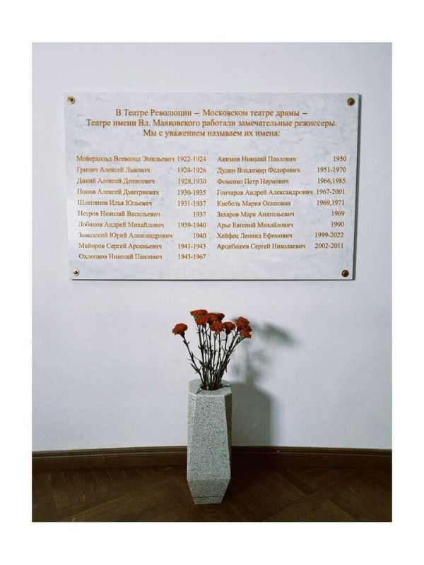— Наоборот, руководством Театра Маяковского была проведена масштабная работа по приведению мемориальных объектов в достойное состояние. Прежний памятный знак, изготовленный из папье-маше с имитацией мрамора и размещенный в случайном, не обусловленном ни исторической логикой, ни архитектурным решением месте, был заменен на новый мемориал из натурального камня. При этом список имен павших воинов был дополнен, что восстановило историческую справедливость. Разработанный под руководством народного художника Российской Федерации, главного художника Театра Владимира Анатольевича Арефьева комплексный проект предусматривает симметричное размещение в зоне партера двух мемориальных досок: в память о воинах-маяковцах и с именами выдающихся режиссеров, творивших в Театре со дня его основания. Новое расположение в местах наибольшей проходимости обеспечивает должное внимание посетителей к этим важным историческим свидетельствам. Стоит отметить, что подобные мемориальные зоны сохранились далеко не во всех театрах.