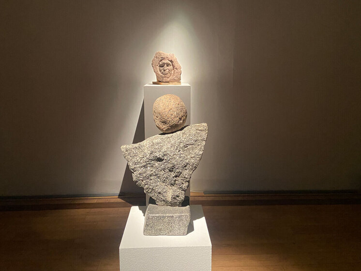 Есть здесь и произведения, имеющие привычный вид, — скульптура Вадима Сидура «Инквизитор», в дуэте с ней — произведение автора 0331с «Танец». С ними в зале звуковая поэтическая инсталляция «Эхо Дао» — тексты, созданные и озвученные нейросетями.