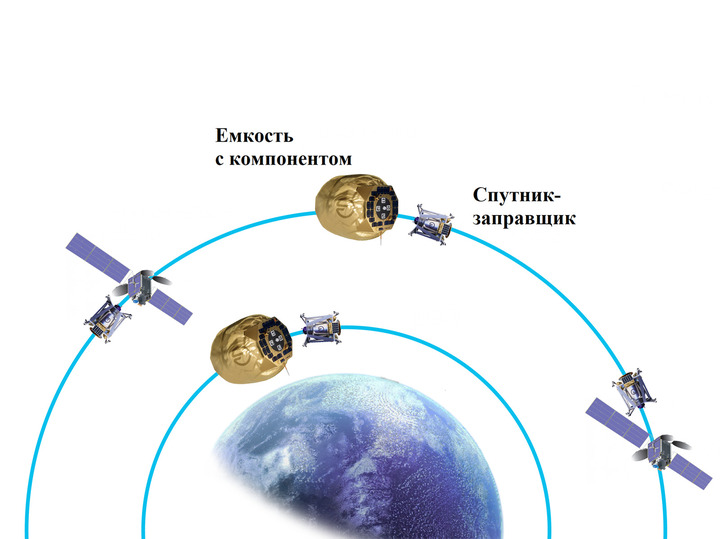Схема дозаправки предполагается такой. На нужную орбиту будут выводить космический аппарат, представляющий собой ёмкость с рабочим телом и установленным на нём автоматическим спутником-заправщиком, который будет, заправившись от этой ёмкости и перелетая от неё к спутнику, заправлять его. Потом – возвращаться к ёмкости за новой порцией топлива для другого спутника, и так далее, пока ёмкость не опустеет. При этом сами заправляемые спутники могут непрерывно продолжать работу, находясь в заданной точке орбиты. Предполагается, что таких космических «танкеров» будет много.